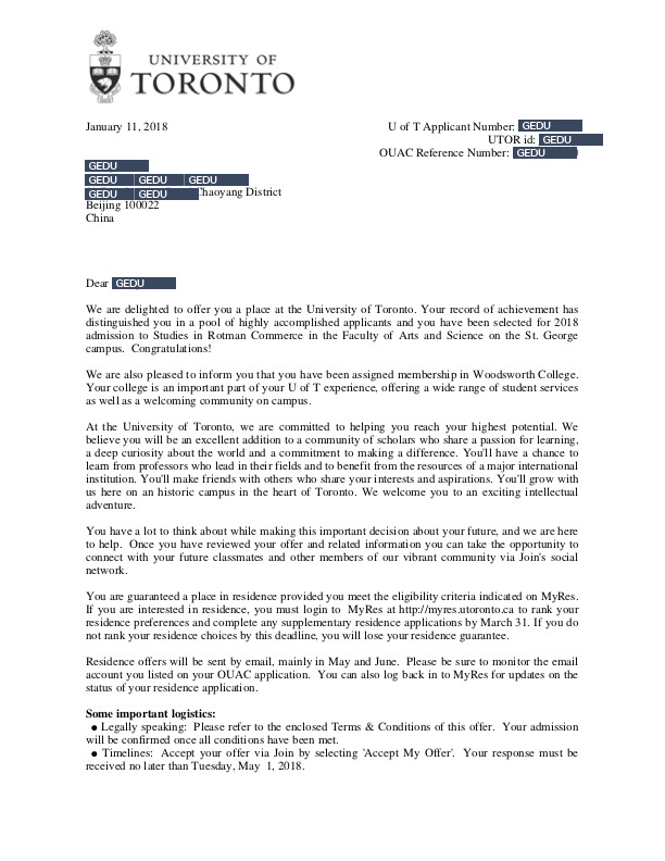 案例C 同學: SAT: 1450+, TOEFL: 105+, 國內某國際高中學生 錄取院校: University of Toronto C同學在計劃出國留學的時候,目標國家并不是加拿大,而是熱門留學國家之一美國。由于他一開始申