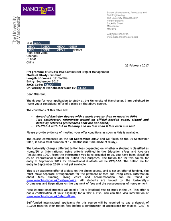 美加雙申, 三本院校, GPA3.0, 有一年實習經歷,申請到曼徹斯特大學。